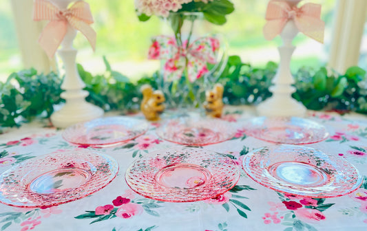 Antique Imperial Diamond Quilted Pink Depression Glass 6 inch Dessert Plates