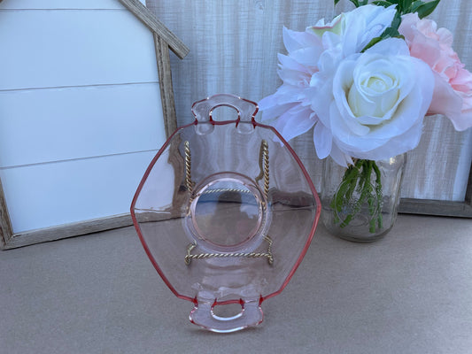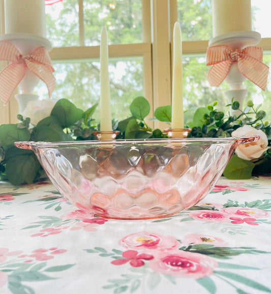 Antique 1930s Pink Depression Glass Berry Bowl with Ornate Glass Handles