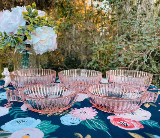 Antique Anchor Hocking Queen Mary Pink Depression Glass Set of 3 Bowls and 2 Nappies