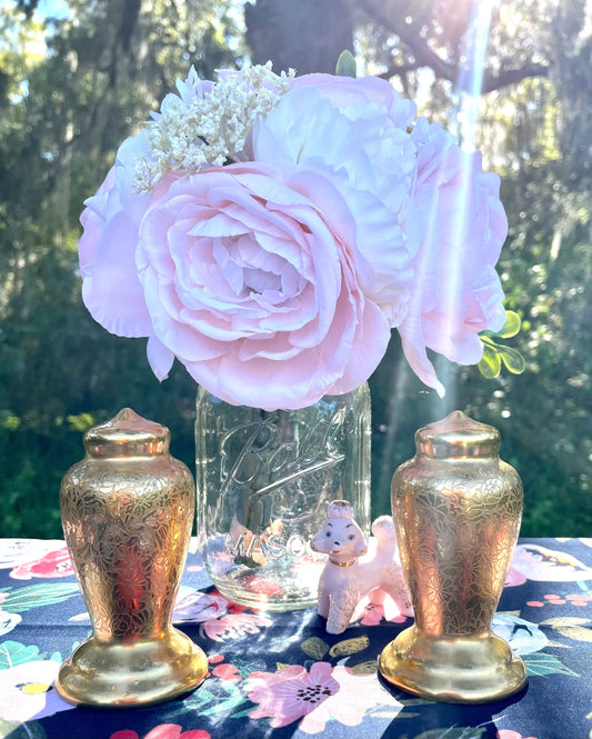 1930s 24 Karat Gold Pickard Rose and Daisy Etched Salt & Pepper Shaker Set