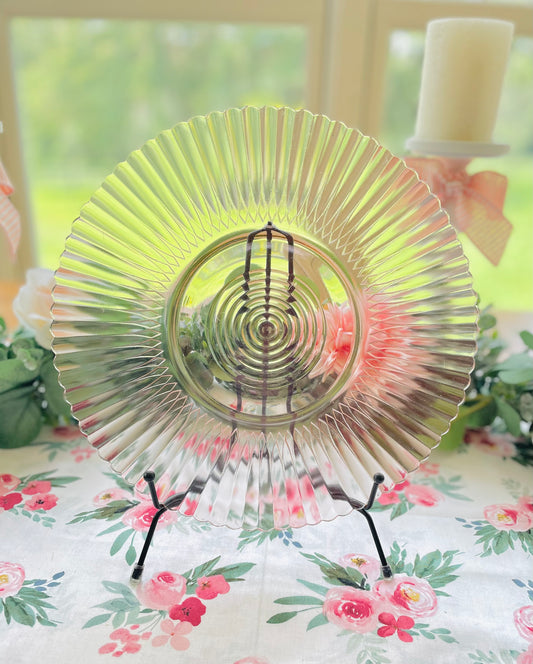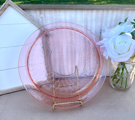 Antique Pink Depression Glass Honeycomb Pressed Cake Plate/ Vanity Tray