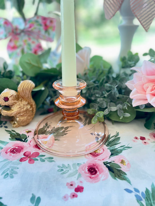 Antique Pink Depression Glass Tapered Etched Table Top Candle Holders