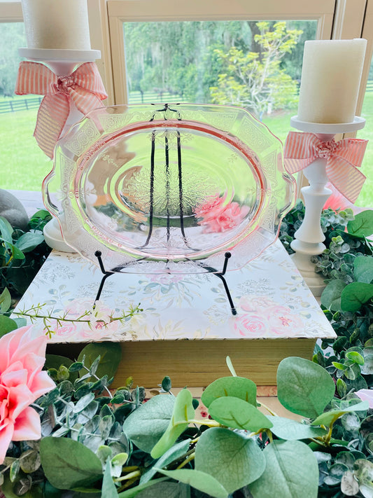 Antique Jeannette Adam Pink Depression Glass Etched 6 Inch Plate