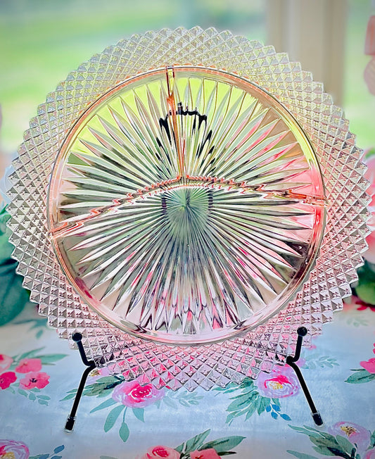 Antique Pink Depression Glass Diamond Pattern 11.5 inch Platter with Handles