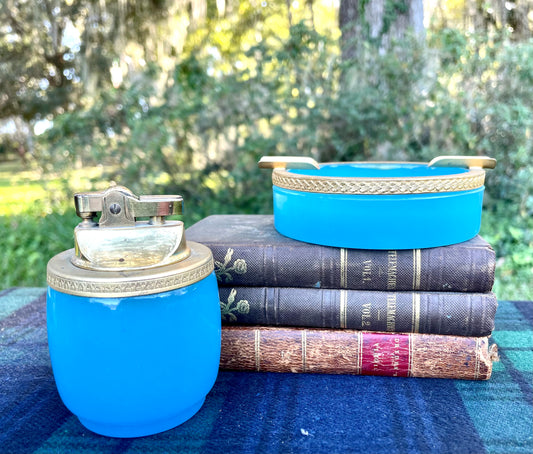 Antique Ocean Blue Opaline Glass Smoking Set by Casa Del Regalo Bortoli Venezia