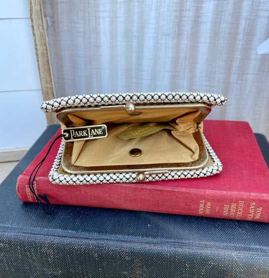 Antique Park Lane Pearl White and Gold Folding Twist Top Wallet