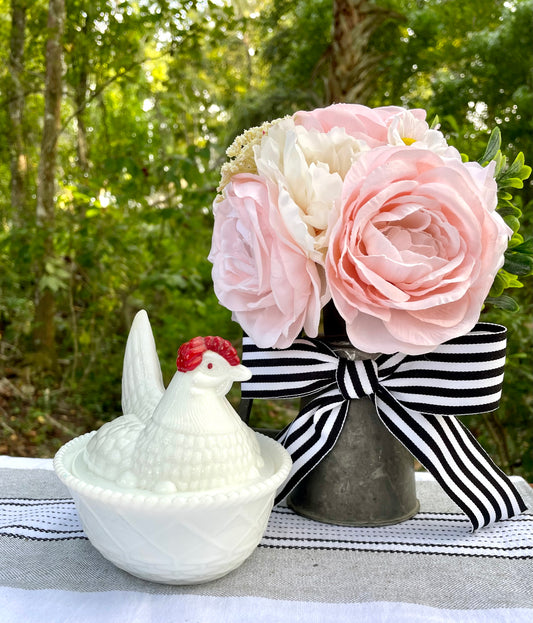 Antique White Milk Glass Nesting Hen with Red Head and Split Tail Hen on a Nest Farmhouse Kitchen Décor 1950s