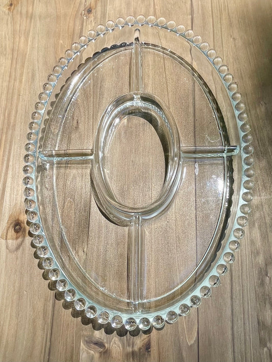 Elegant Crystal Candlewick Pattern Large Oval Divided Vegetable Party Tray by Imperial Glass Co. 1940-1960s