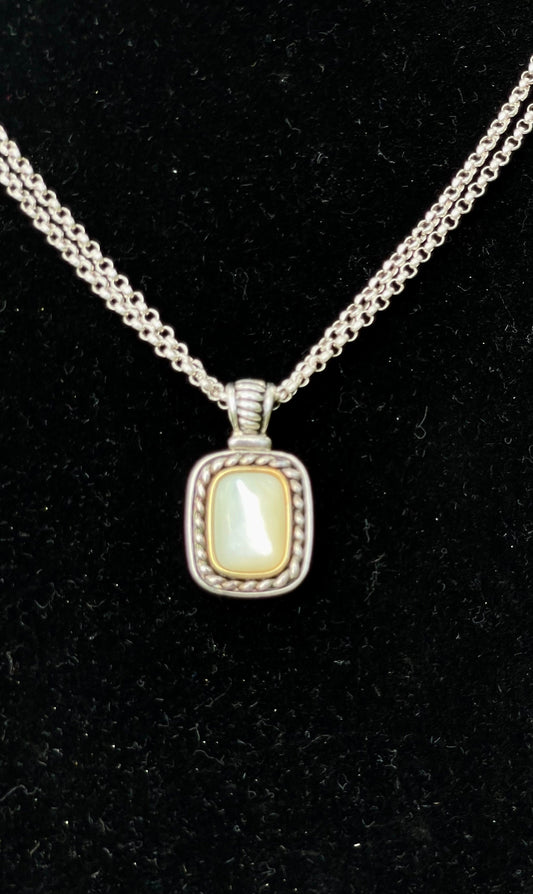 Iridescent White Stone Pendant Double Chain Sterling Silver Necklace