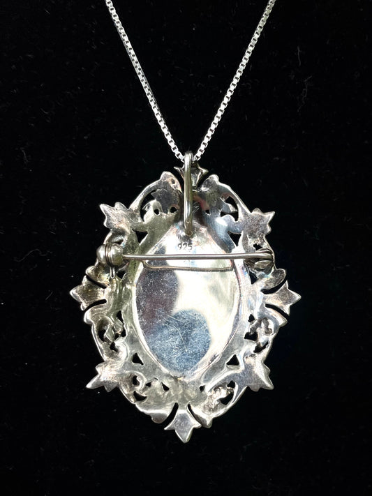 Large Vintage Black Onyx Gothic Style Filigree Necklace