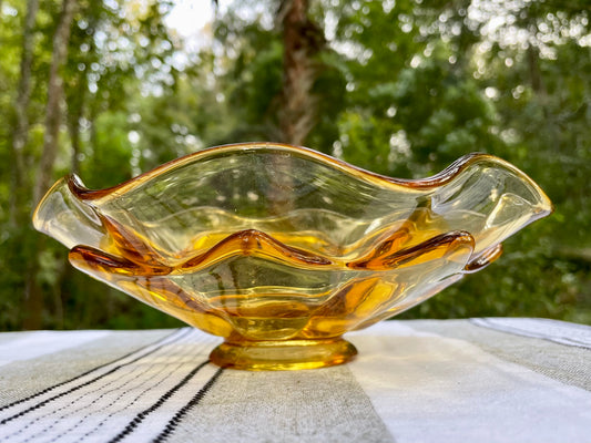 MCM Yellow Viking Glass Orange Molded Double Layered Bowl Ruffle Edge Compote Fruit Bowl