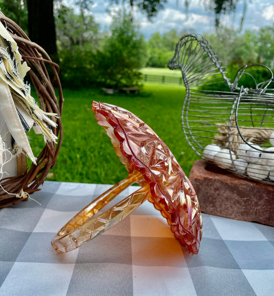 Vintage Marigold Carnival Glass Ornate Basket with Handle