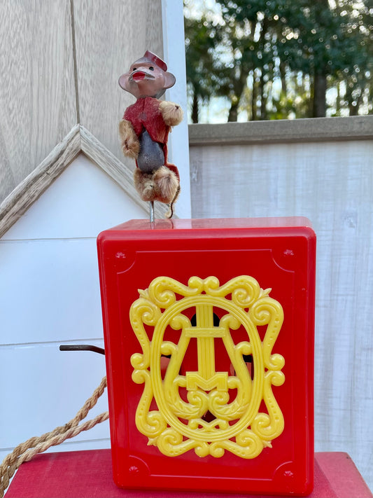 Vintage Hurdy Gurdy Mattel Wind up Circus Monkey Music Box