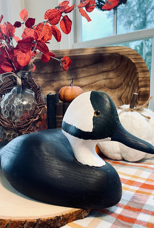 Vintage Common Goldeneye Duck Decoy Country Themed Home Decor Black and White Duck Hand Carved Duck Decoy
