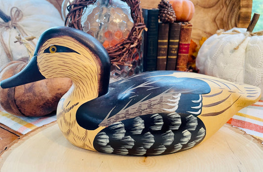 Vintage Hand Carved and Painted Wooden Water Foul Drake Female Duck Decoy