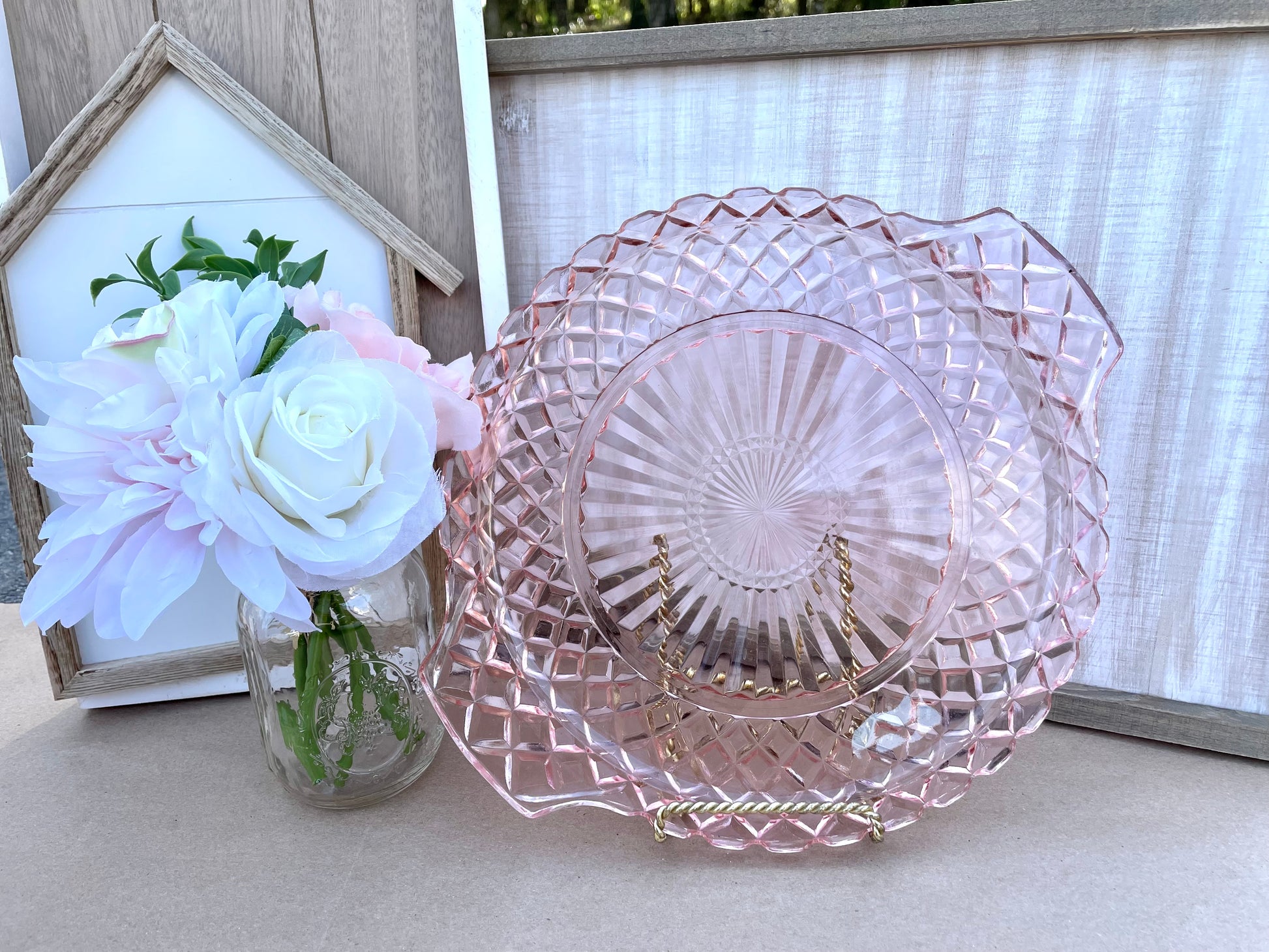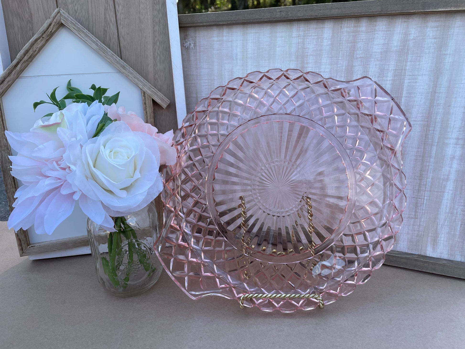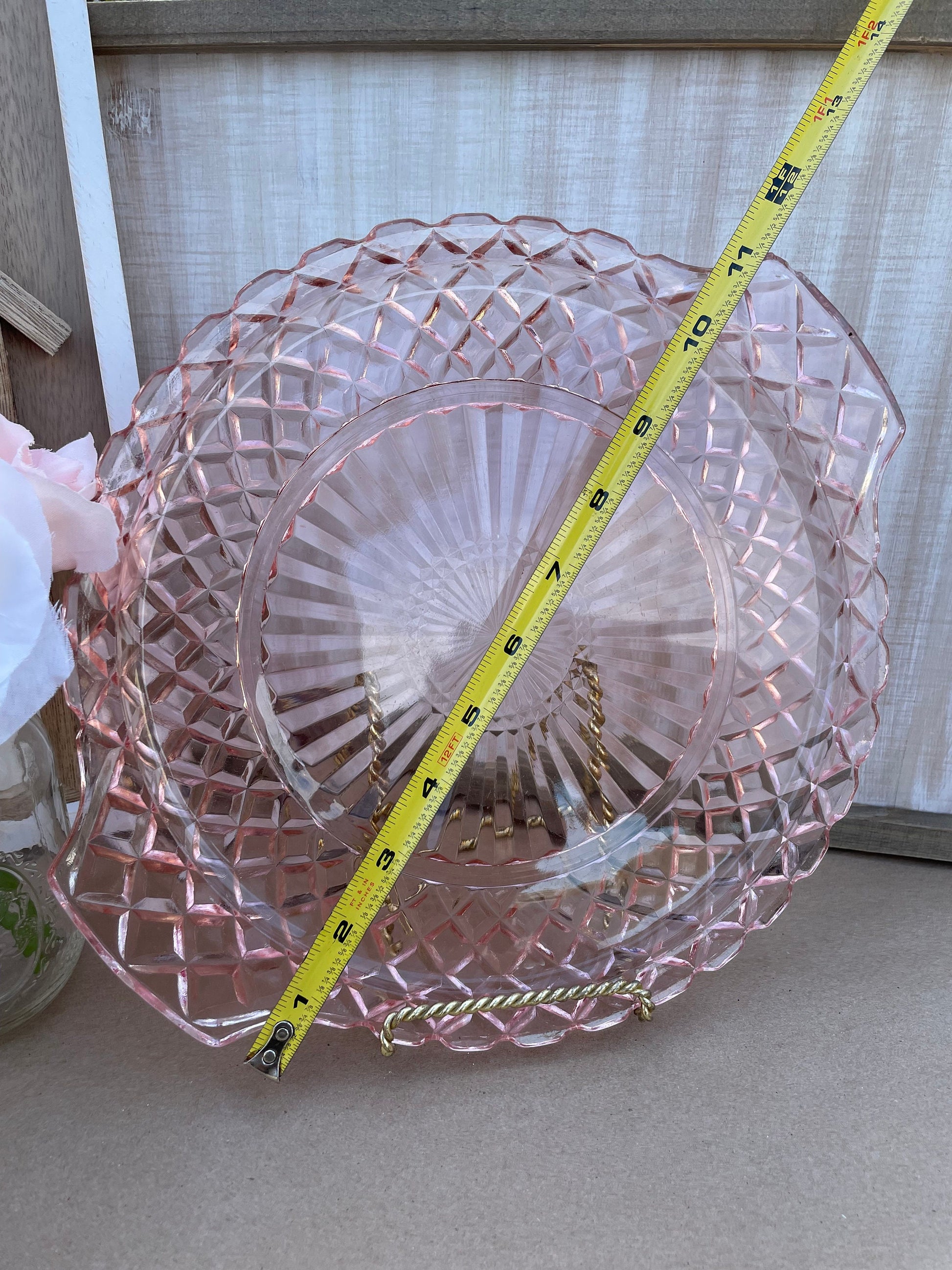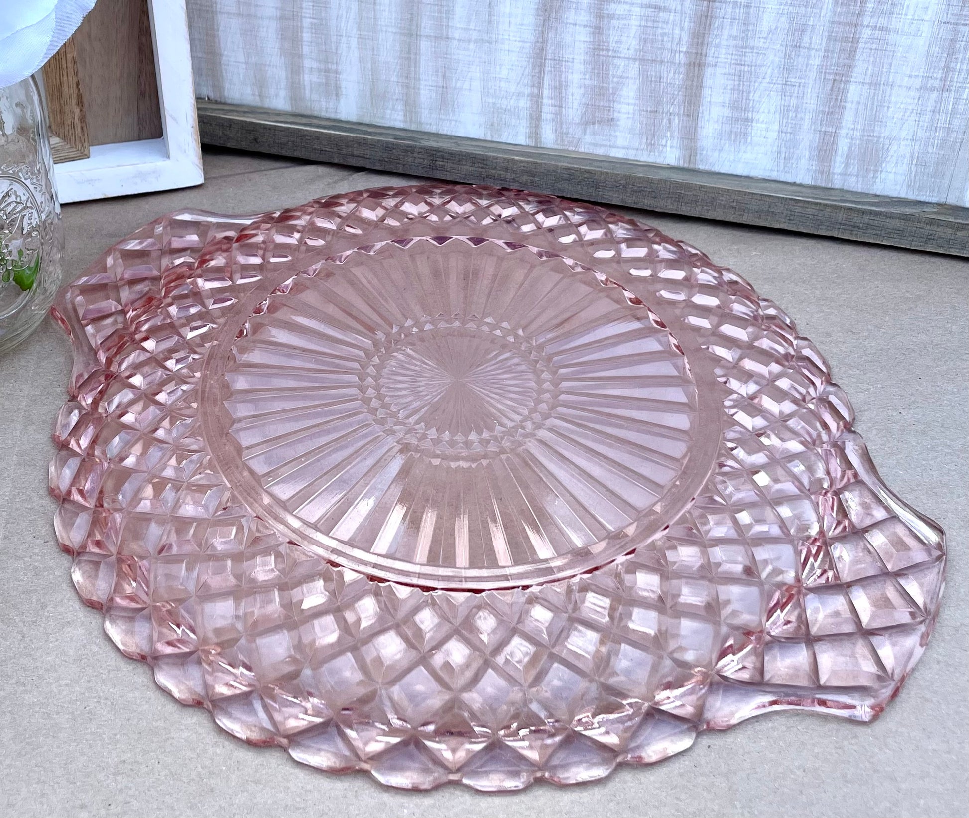 Antique Pink Depression Glass Diamond Pattern 11.5 inch Platter with Handles