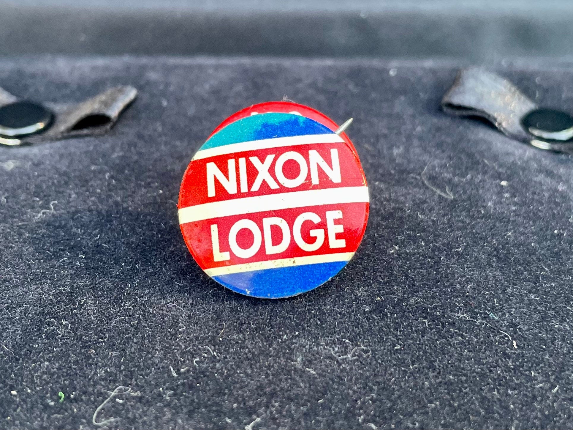 Vintage 1960s Presidential Campaign Nixon Lodge Red White & Blue Political Pin